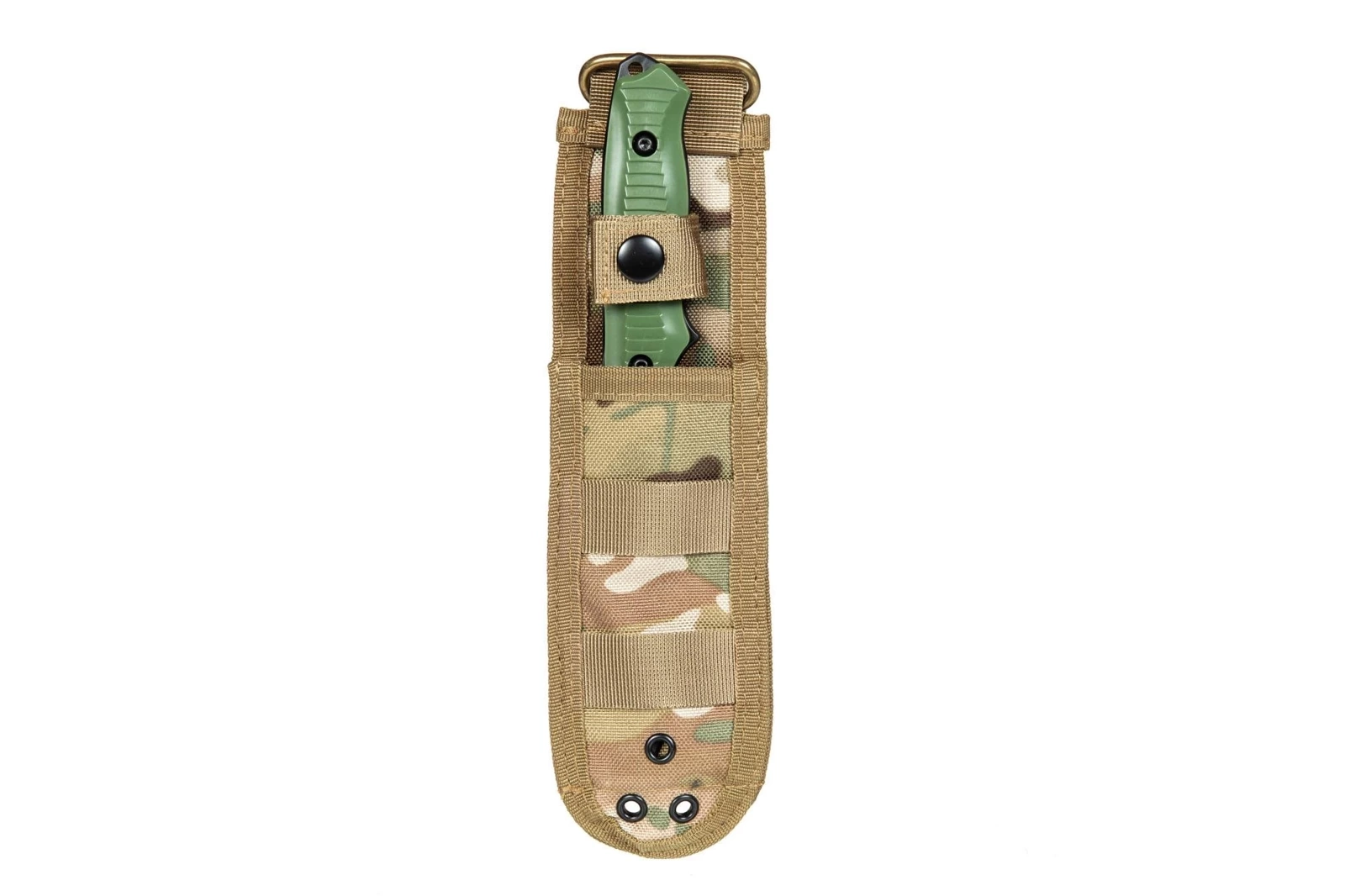 W zestawie znajduje się wykonana z nylonu pochwa typu w kamuflażu MC, zaopatrzona w mocowanie do paska.
