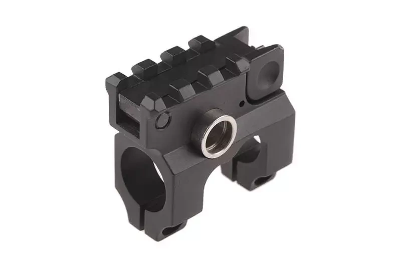 Zespół muszki montowany na lufę zewnętrzną. Cały element wykonano z metalu, jest on wyposażony w szynę RIS natomiast regulowana w pionie muszka posiada możliwość wertykalnego złożenia. Dodatkowo element posiada wbudowany, obustronny montaż zawieszenia w systemie QD.
