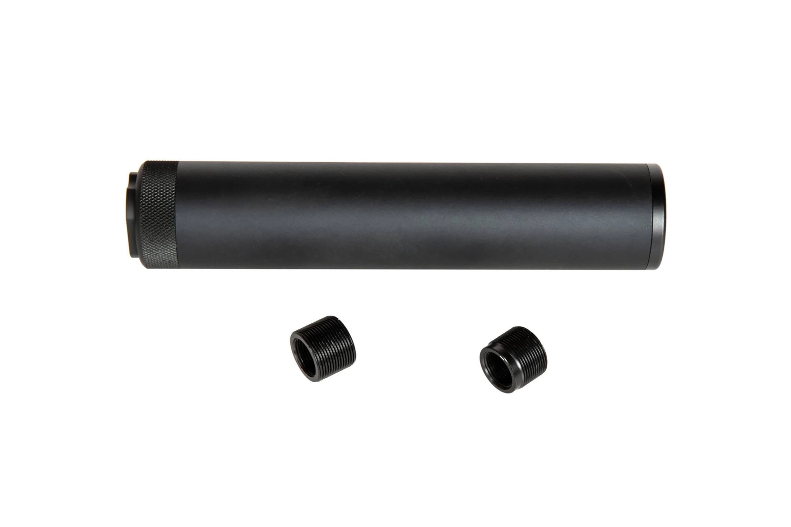 Wykonany z metalu tłumik dźwięku o długości 185,4mm. Tłumik wyposażony jest w dwa adaptery do gwintu 14mm prawo i lewoskrętnego.
