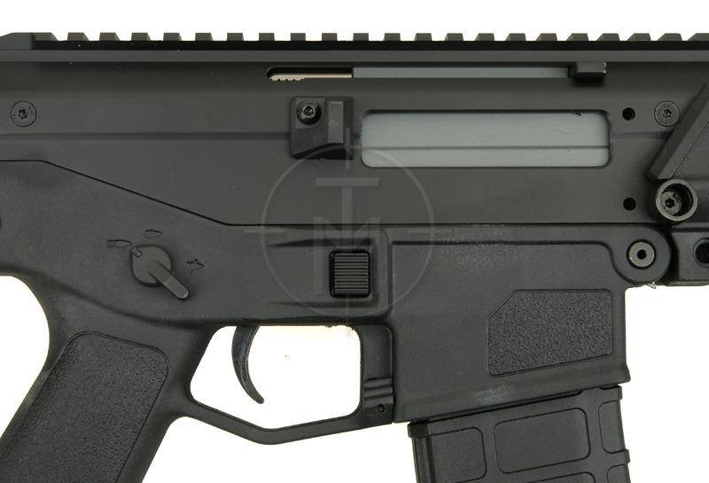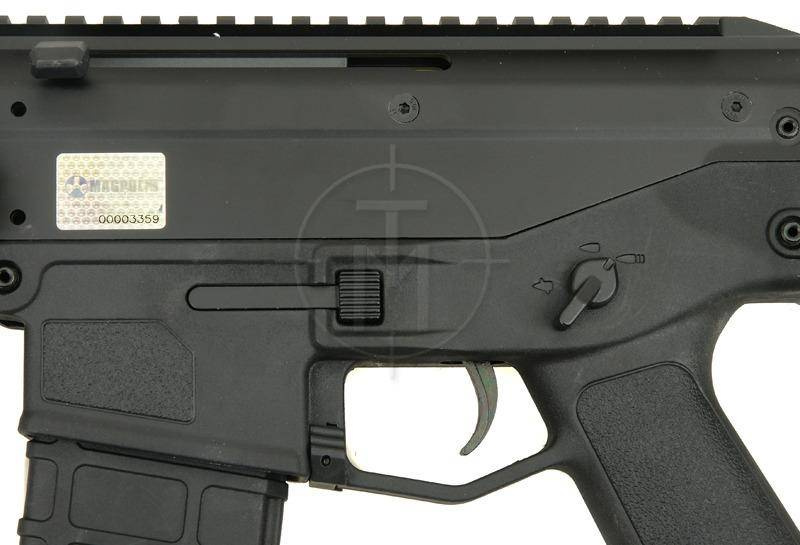 W przeciwieństwie do dostępnych wcześniej na rynku modeli, ten wykonany został na licencji firmy MAGPUL Industries. Posiada więc oryginalne i charakterystyczne dla wersji ostrej oznaczenia firmowe.