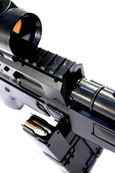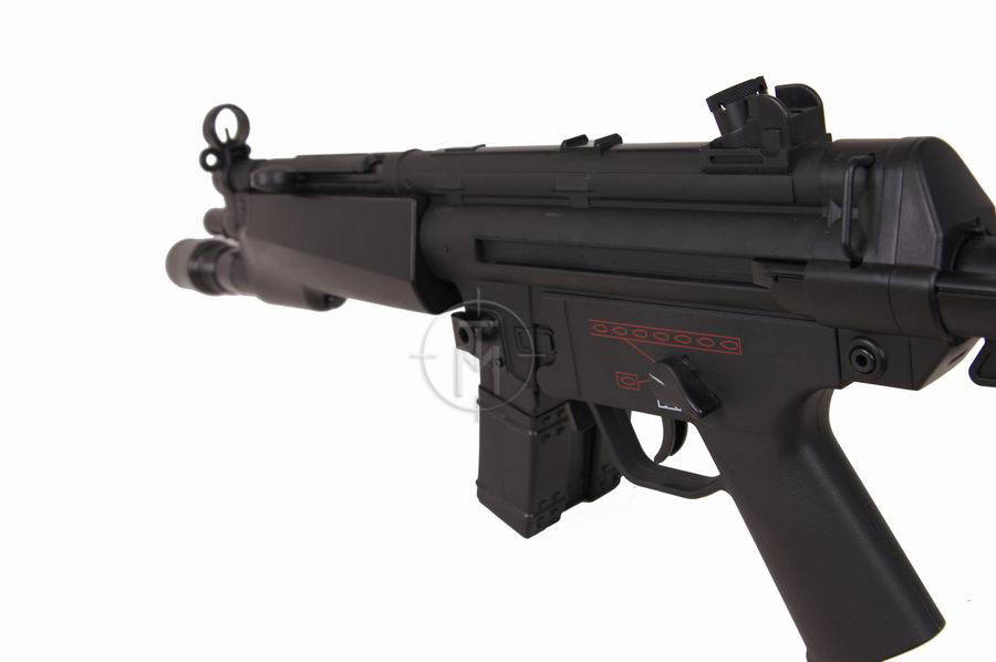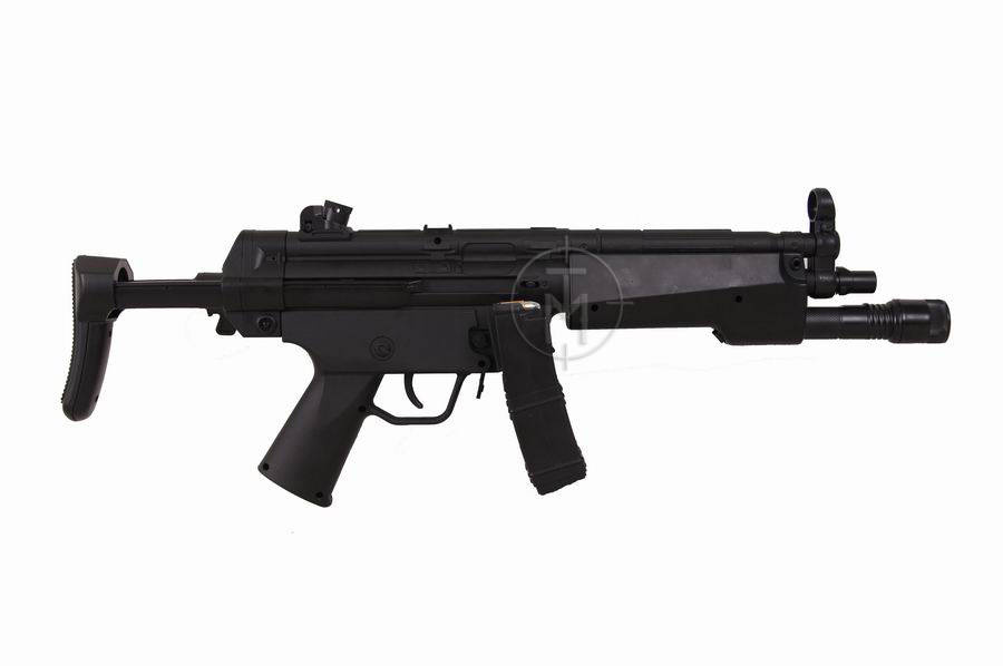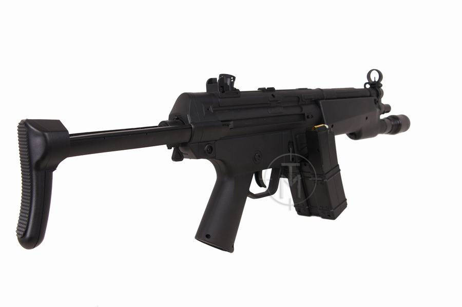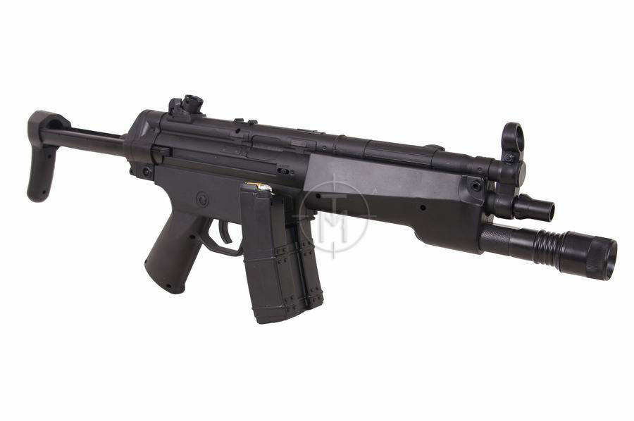 Replika pistoletu maszynowego Mp5 firmy CYMA. Posiada dwa magazynki: low-cap (30 kulek) i high-cap (110 kulek). W zestawie znajduje się dodatkowo kolimator, latarka i szynas ris, okulary, zawieszenie i szybkoładowarka. Replika posiada gumową stopkę kolby, co znacznie ułatwia jej obsługę.