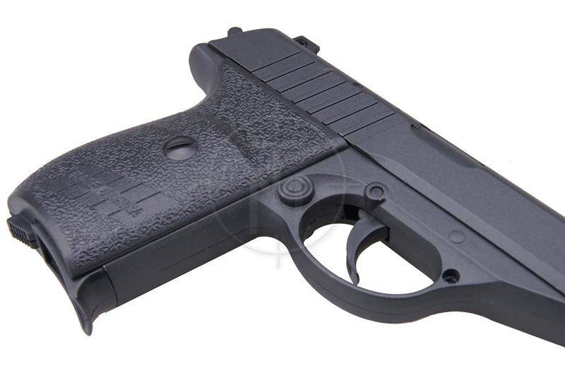 Replika wykonana jest z metalu oraz tworzywa. Elementy wykonane z tworzywa to chwyt pistoletowy, magazynek oraz spust. Pozostałe elementy wykonano z metalu. Pistolet napędzany jest sprężynowo co oznacza, że każdorazowo do oddania strzału należy replikę przeładować. Przeładowanie następuje poprzez pociągnięcie zamka do siebie. W zestawie znajduje się magazynek o pojemności 9 kulek. Prędkość wylotowa repliki to ~160 FPS.