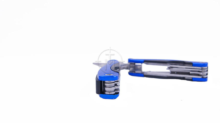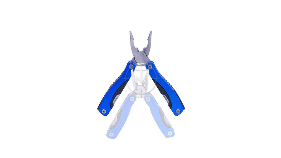 Funkcjonalny multitool wykonany  ze stali nierdzewnej z okładzinami z ABS w kolorze niebieskim. Idealnie nadaję się na wyprawy, do naprawiania mniejszych usterek w terenie czy jako zastępstwo wielu podręcznych narzędzi. Posiada wiele bardzo przydatnych funkcji: