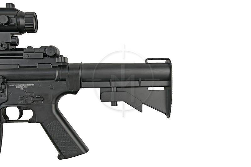 Replika wyposażona jest w wygodną, regulowaną kolbę, co umożliwia dostosowanie jej do budowy strzelca. Akumulator repliki wbudowany jest w magazynek - okablowanie znajduje się w gnieździe magazynka. Podajnik kulek umieszczono w atrapie kolimatora. Jego pojemność wynosi ~300 kulek.