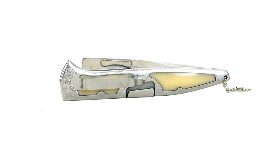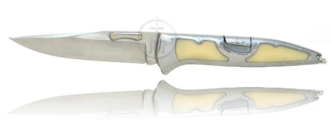 Nóż wykonany z wysokiej jakości stali o próbie 440. Ostrze i wykończenia w kolorze stalowym. Rękojeść z elementami tworzywa w kolorze perłowym, jest profilowana oraz antypoślizgowa, dzięki czemu dobrze dostosowuje się do dłoni. Nóż posiada ostrze typu drop point. Posiada specjalnie zabezpieczenie uniemożliwiające niepożądane otwarcie ostrza. Idealnie nadaje się do codziennych czynności. Jego wytrzymałość pozwala również na korzystanie z niego podczas różnego rodzaju biwaków czy survivali. Nóż bez problemu radzi sobie z linami, gałęziami drzew i potrafi przeciąć niewielkiej grubości druty.