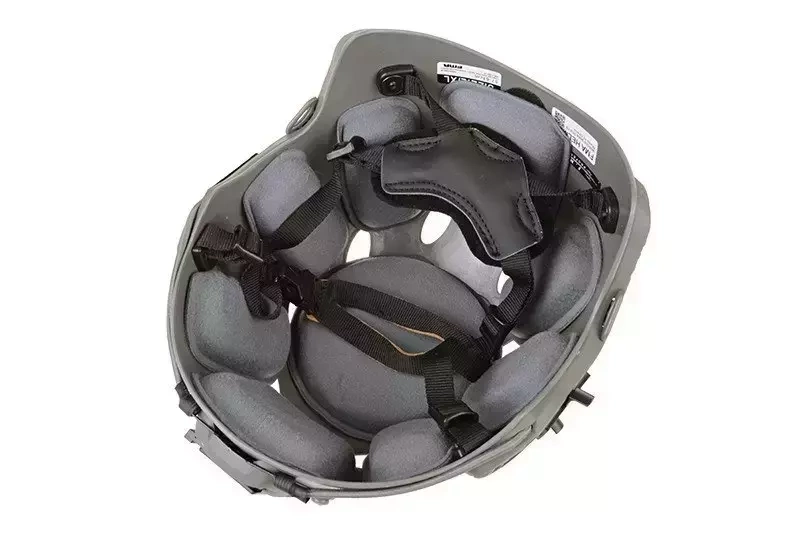 Replika kasku wykonana z tworzywa. Dzięki swojej niewielkiej wadze oraz przemyślanej konstrukcji jest bardzo wygodna w noszeniu. Znajdujące się wewnątrz gąbki powodują, iż kask jest stabilnie osadzony na głowie. Pozycję gąbek możemy dostosować do swoich preferencji, gdyż mocowane są przy pomocy rzepów velcro. Szeroki zakres regulacji posiada 4-punktowy fasunek, zapinany na klamrę typu fastex. Dodatkowym atutem fasunku jest fakt, iż został wykonany w układzie zamkniętym, czyli nie posiada luźnych, odstających pasków regulujących.