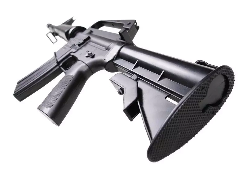 Replika karabinka szturmowego MR-722 wykonana została z bardzo wytrzymałego ABS-u. Charakteryzuje się dobrą jakością wykonania i dbałością o szczegóły takie jak przestawny przeziernik w rączce transportowej. Model ten wyglądem nawiązuje do wczesnych wersji karabinka firmy Colt CAR-15 z charakterystycznym chwytem przednim. Zastosowano w nim 5 pozycyjną składaną kolbę znaną z karabinka M4. Dzięki temu możemy jeszcze lepiej dopasować replikę do swojej postawy strzeleckiej.
