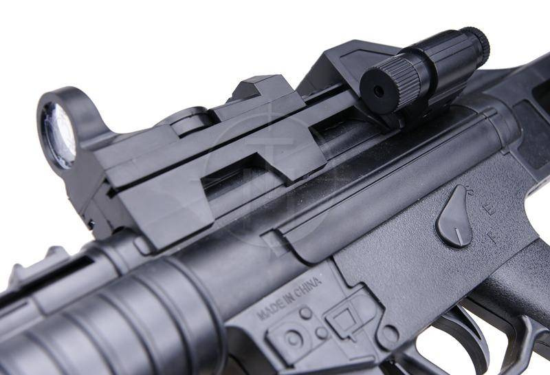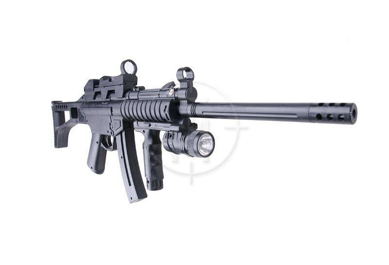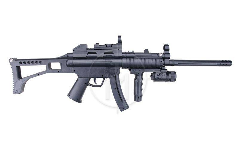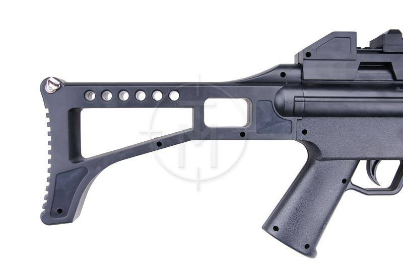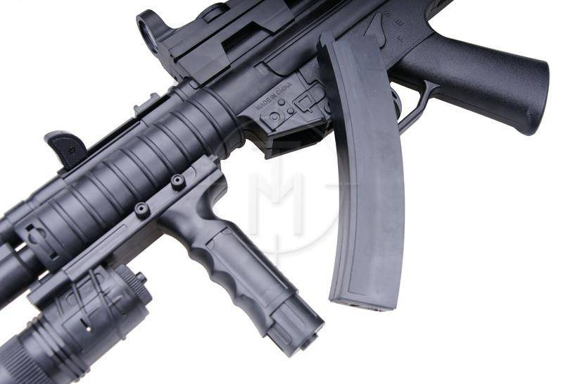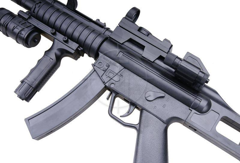 Replika zasilana jest z magazynka o pojemności 15 kulek i wyposażona w zestaw szyn RIS, umożliwiających przyłączenie dodatkowego oporządzenia, takiego jak załączony w zestawie celownik optyczny imitujący kolimator, laserowy znacznik celu oraz zintegrowany zespół latarki i chwytu taktycznego, wzorowany na modelu SureFire M900.