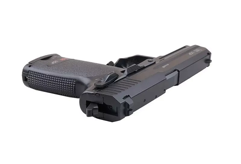 Wykonana z wysokiej jakości tworzywa sztucznego replika pistoletu HECKLER & KOCH USP. Niewielka i poręczna, zaopatrzona w wygodny profilowany chwyt pistoletowy. Replika posiada wybity indywidualny numer oraz oznaczenia producenta.