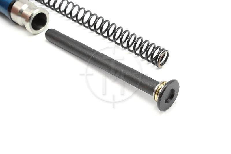 Tłok hybrydowy wykonany został z 3 rodzajów metalu. Obudowa z aluminium pozwoliła obniżyć wagę tłoka, pierścień z poliacetalu (POM) zmniejsza tarcie tłoka w cylindrze, natomiast tylna część ze stali nierdzewnej jest niezwykle wytrzymała i odporna na ścieranie. Średnica wewnętrzna wynosi 13,3mm, co umożliwia użycie różnego rodzaju mocnych sprężyn.