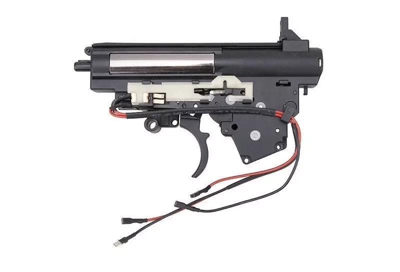 Kompletny, standardowy gearbox w wersji V3 przeznaczony do montażu w replikach z serii G36. Zbudowany jest na bazie wysokiej jakości podzespołów pozwalających na uzyskanie wysokich prędkości wylotowych. Zastosowanie 7 mm łożysk znacznie poprawia efektywność pracy kół zębatych.