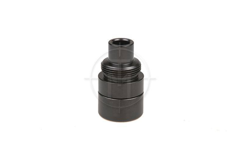 Adapter tłumika przeznaczony do montażu w replikach Ruger Mk1. Pozwala na wykorzystanie 14mm gwintu zewnętrznego skrętnego w kierunku przeciwnym do wskazówek zegara.