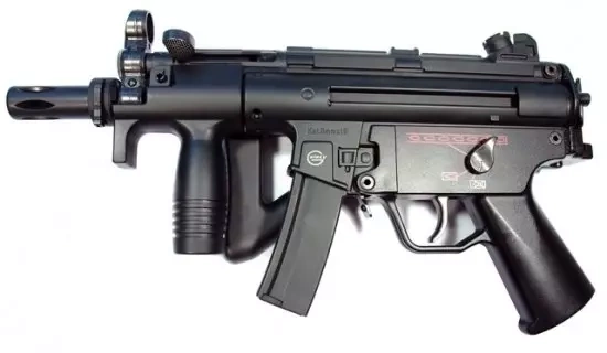 • Replika Model P5 K PDW posiadająca stockową prędkość wylotową rzędu 320 FPS. W komplecie posiada magazynek real-cap (28 kulek) oraz Hi-Cap (250 kulek).
