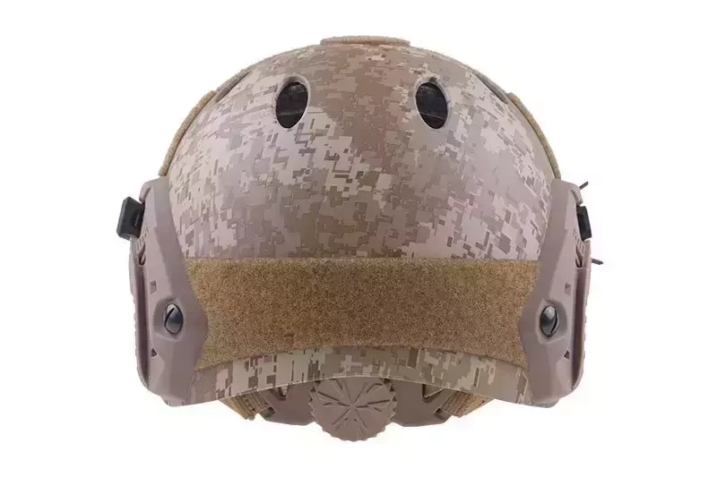 Replika kasku FAST PJ firmy FMA wykonana została z wysokiej jakości tworzywa sztucznego. Dzięki nieznacznej wadze oraz dość specyficznej konstrukcji, kask ten jest niezwykle wygodny w użytkowaniu. Zastosowany fasunek pozwala na pewne i wygodne osadzenie na głowie użytkownika, zaś zastosowane otwory zapewniają stosowną wentylację.