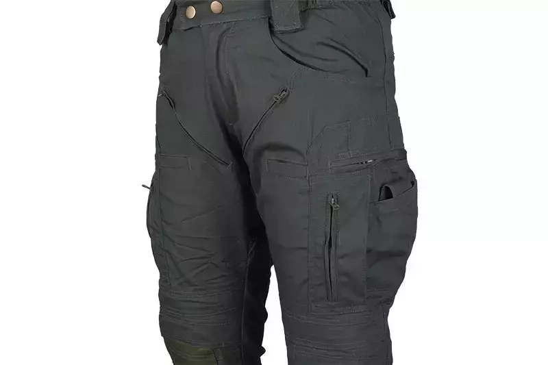 Spodnie wyposażono w aż 12 wygodnych, przemyślanych i ergonomicznie rozmieszczonych kieszeni. Użytkownik ma do dyspozycji klasyczne kieszenie, także takie zamykane za pomocą zamka błyskawicznego oraz dedykowane np. do przechowywania noża czy latarki.