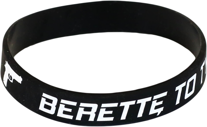 Silikonowa opaska w kolorze czarnym z białym napisem: Berettę to ty szanuj!