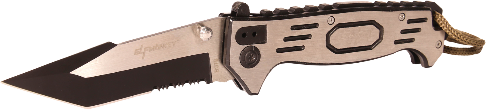 Nóż składany wykonany z dobrej jakości stali o próbie 420. Ostrze w kolorze srebrno-czarnym. Rękojeść jest bardzo wygodna. Nóż posiada uchwyt umożliwiający przypięcie do paska oraz bezpiecznik zapobiegający niepożądanemu otwarciu. Idealnie nadaje się do codziennych czynności. Jego wytrzymałość pozwala również na korzystanie z niego podczas różnego rodzaju biwaków czy survivali. Nóż bez problemu radzi sobie z linami, gałęziami drzew i potrafi przeciąć niewielkiej grubości druty.