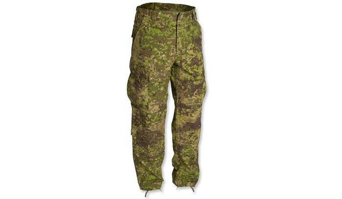 Spodnie z serii Combat Patrol Uniform (CPU®), nawiązującej krojem do munduru MON wzór 2010. Wyprodukowane zostały przez firmę Helikon w licencjonowanym kamuflażu PenCott GreenZone.