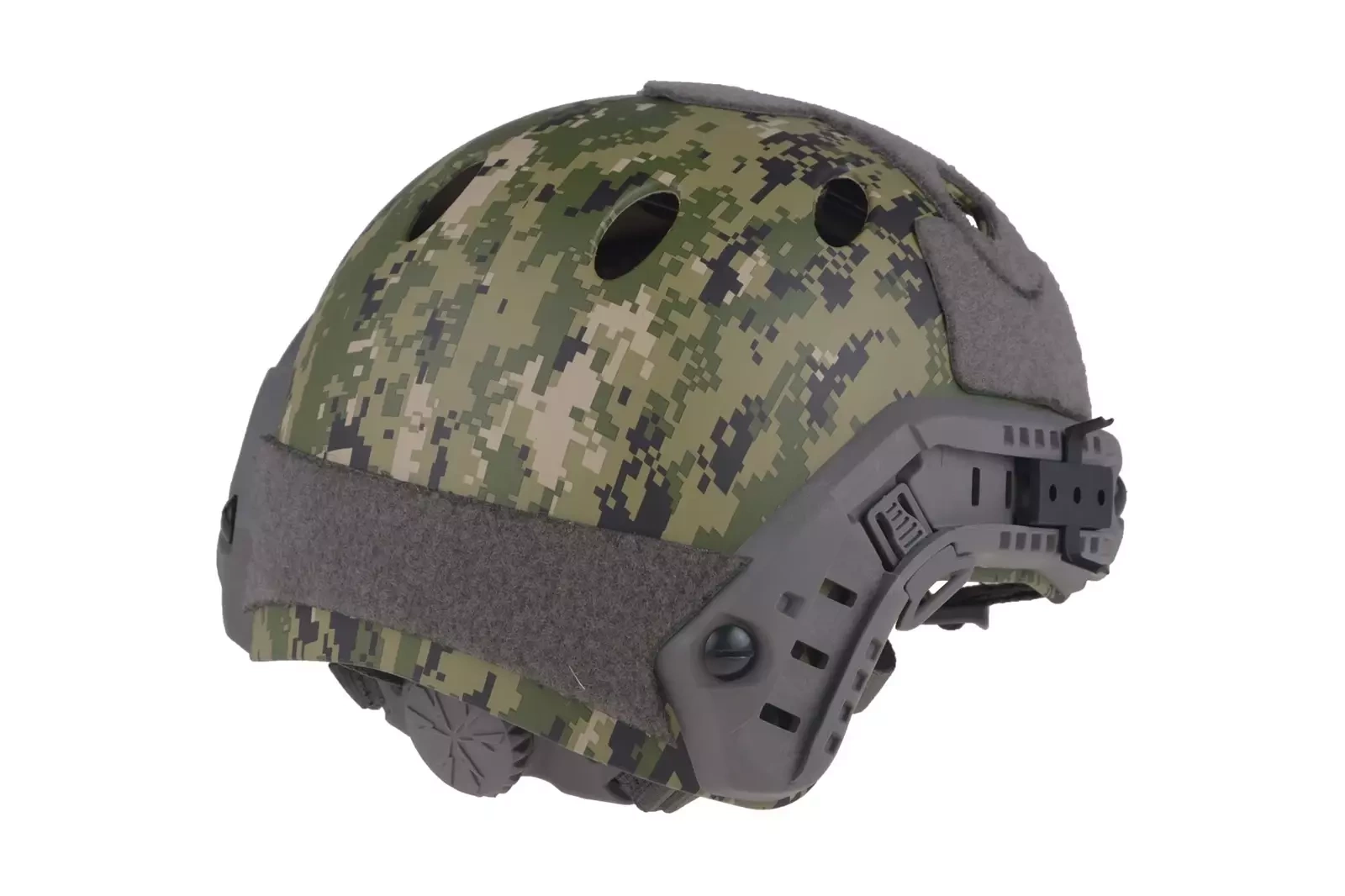 FAST PJ od marki FMA to niezwykle wygodna w użytkowaniu replika kasku o lekkiej i specyficznej konstrukcji. Produkt został wykonany z wysokiej jakości tworzywa sztucznego. Zastosowany fasunek umożliwia pewne i wygodne osadzenie na głowie użytkownika a dobrze rozmieszczone otwory gwarantują stosowną wentylację.