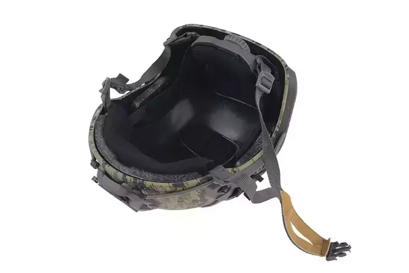 Replika kasku wykonana z tworzywa. Dzięki swojej niewielkiej wadze oraz przemyślanej konstrukcji jest bardzo wygodna w noszeniu. Znajdujące się wewnątrz gąbki powodują, iż kask jest stabilnie osadzony na głowie. Pozycję gąbek możemy dostosować do swoich preferencji, gdyż mocowane są przy pomocy rzepów. Szeroki zakres regulacji posiada 4-punktowy fasunek, zapinany na klamrę typu fastex. Dodatkowym atutem fasunku jest fakt, iż został wykonany w układzie zamkniętym, czyli nie posiada luźnych, odstających pasków regulujących.