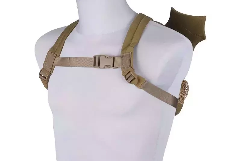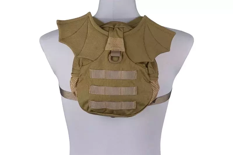 Wykonany z wysokiej jakości Nylonu 1000D plecaczek taktyczny wyposażony w skrzydła. Na przedniej części plecaka umieszczono dwa rzędy palsów MOLLE, D-ring oraz panel rzepowy. Po bokach plecaka znajdują się kieszenie siatkowe. Główna komora plecaka posiada dodatkową kieszeń, w zestawie znajduje się system nośny z dwoma klamrami co pozwala przekształcić plecak w torbę. Główna komora zamykana jest przy pomocy zamka błyskawicznego. NA system nośny plecaka składają się dwie, regulowane szelki z mini pasem nośnym.