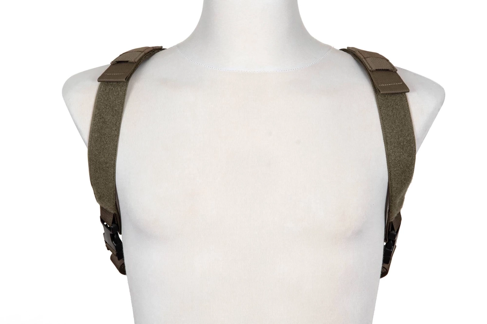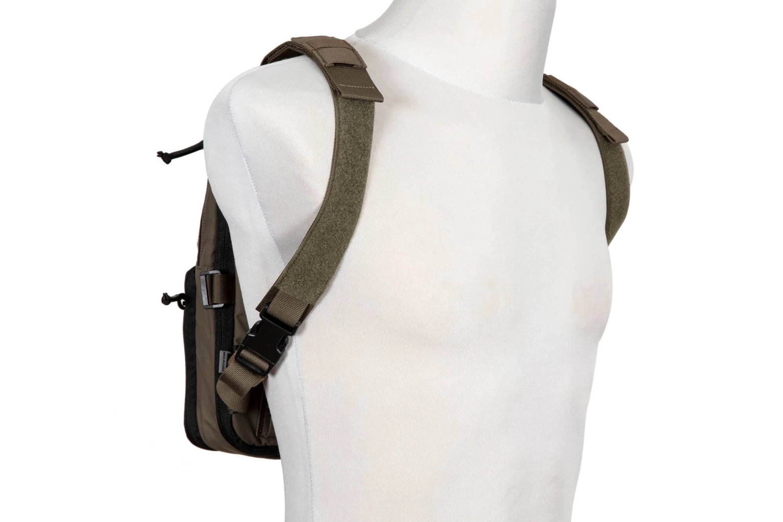 Oprócz standardowych regulowanych szelek plecak ma również możliwość bezpośredniego przypięcia do kamizelki dzięki systemowi MOLLE.