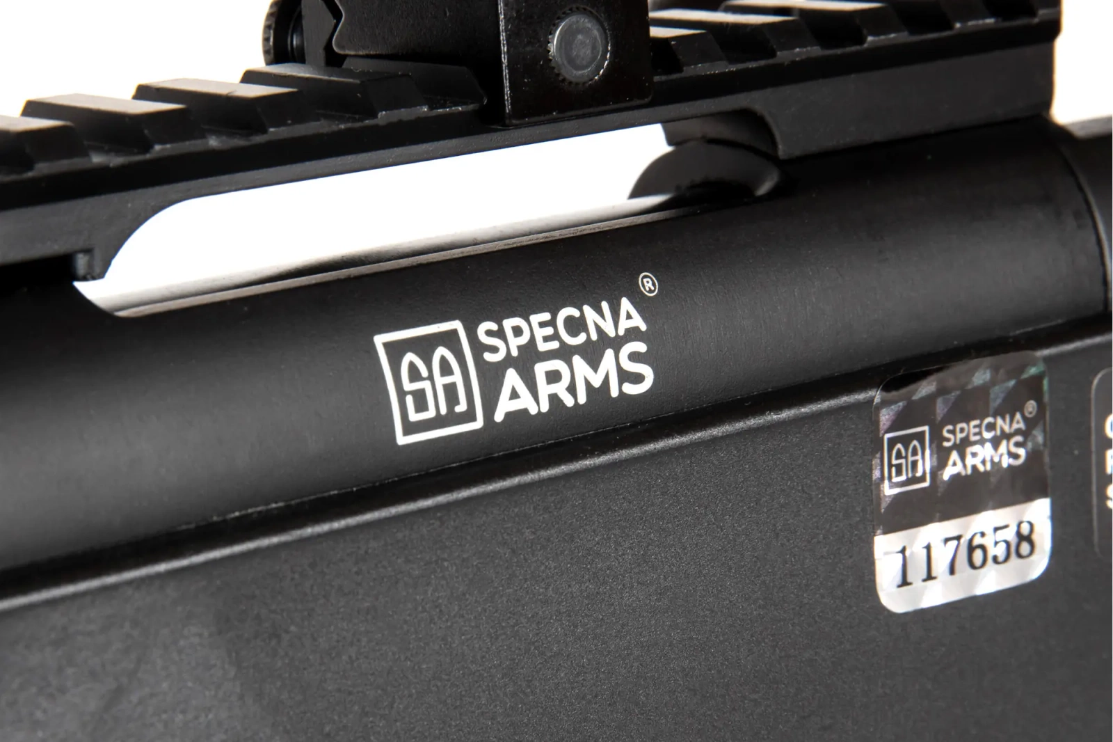 Replikę snajperską Specna Arms wyposażono w prosty i niezawodny system czterotaktowy, który należy przeładować przed oddaniem każdego strzału. Replika wykonana została z metalu oraz wzmocnionego tworzywa sztucznego. Metalowy jest tu cały zespół lufy zewnętrznej wraz z komorą zamkową, spustem i rączką przeładowania, a także szyny akcesoryjne RIS / Picatinny i wszystkie elementy montażowe, takie jak śruby. Łoże z kolbą, bakę policzkową, stopkę kolby i magazynek wykonano z solidnego tworzywa sztucznego. Sama stopka kolby zakończona została wygodną, gumową nakładką, jej grubość można regulować dzięki kompletowi wymiennych nakładek. W połączeniu z regulowaną baką policzkową daje to możliwość dopasowania kolby do preferencji strzelca.