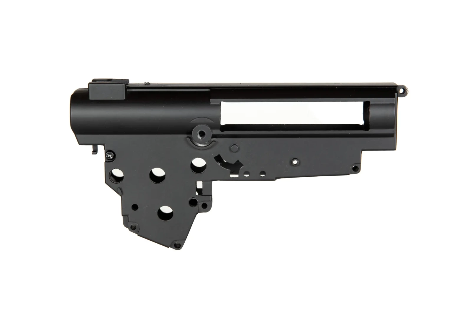 Wykonany z metalu wzmocniony szkielet dedykowany to replik z gearboxami v3. Konstrukcja jest przygotowana do pracy z łożyskami 8mm oraz z systemem szybkiej wymiany sprężyny. W zestawie znajdują się śrubki montażowe.