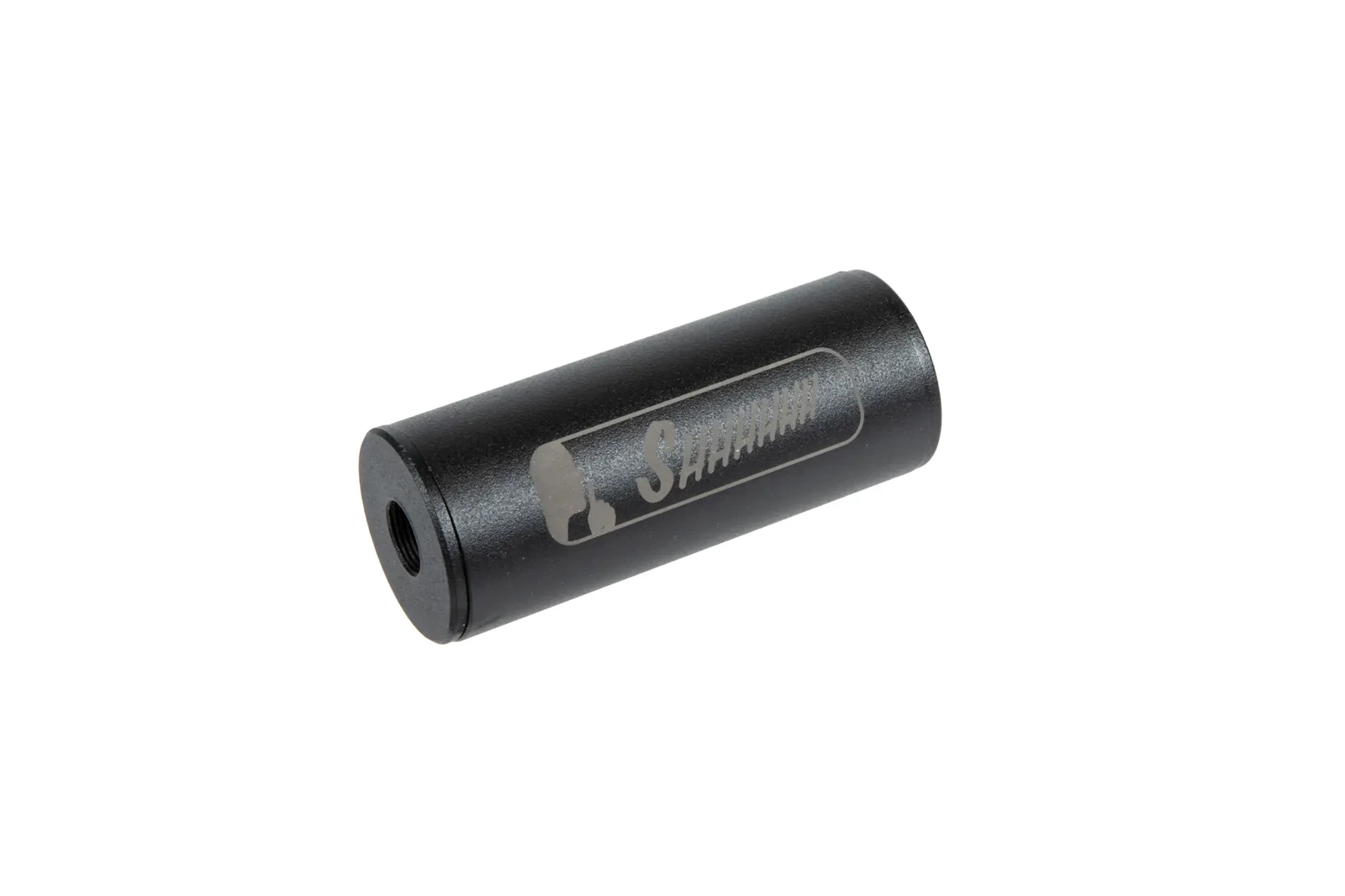 Wykonany z wytrzymałego Aluminium klasy PA6 tłumik dźwięku z grawerem, wersja PRO w porównaniu do standardowej edycji posiada wypełnienie z gąbki.
