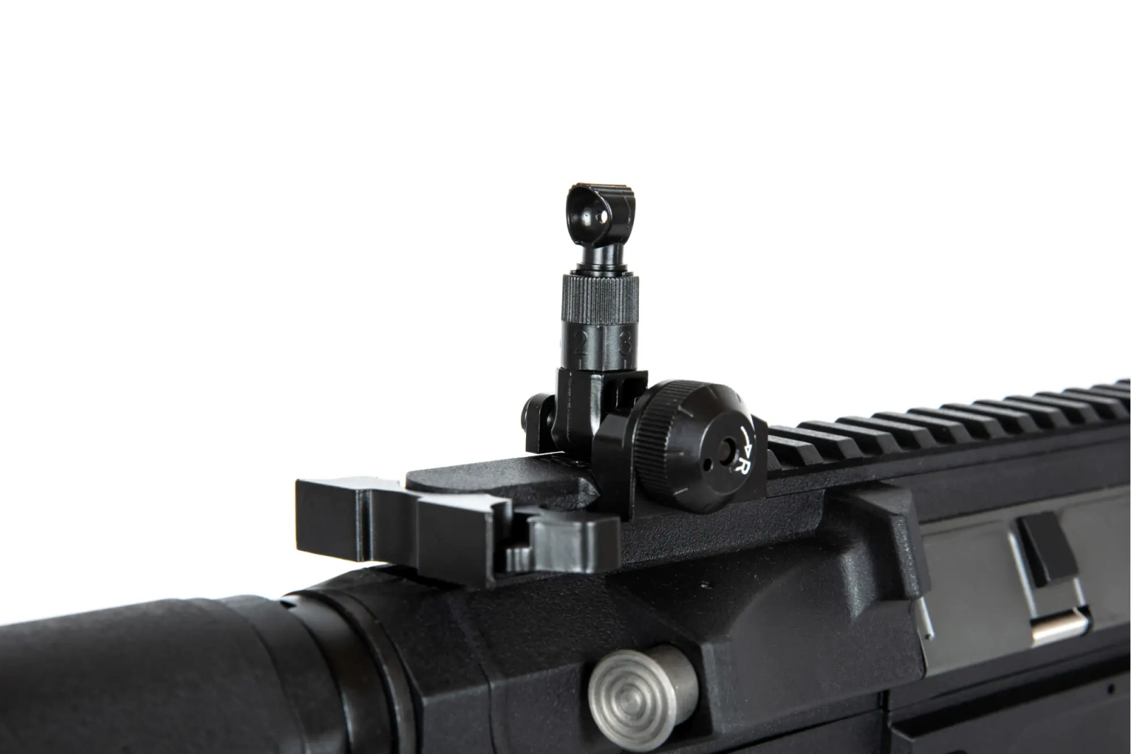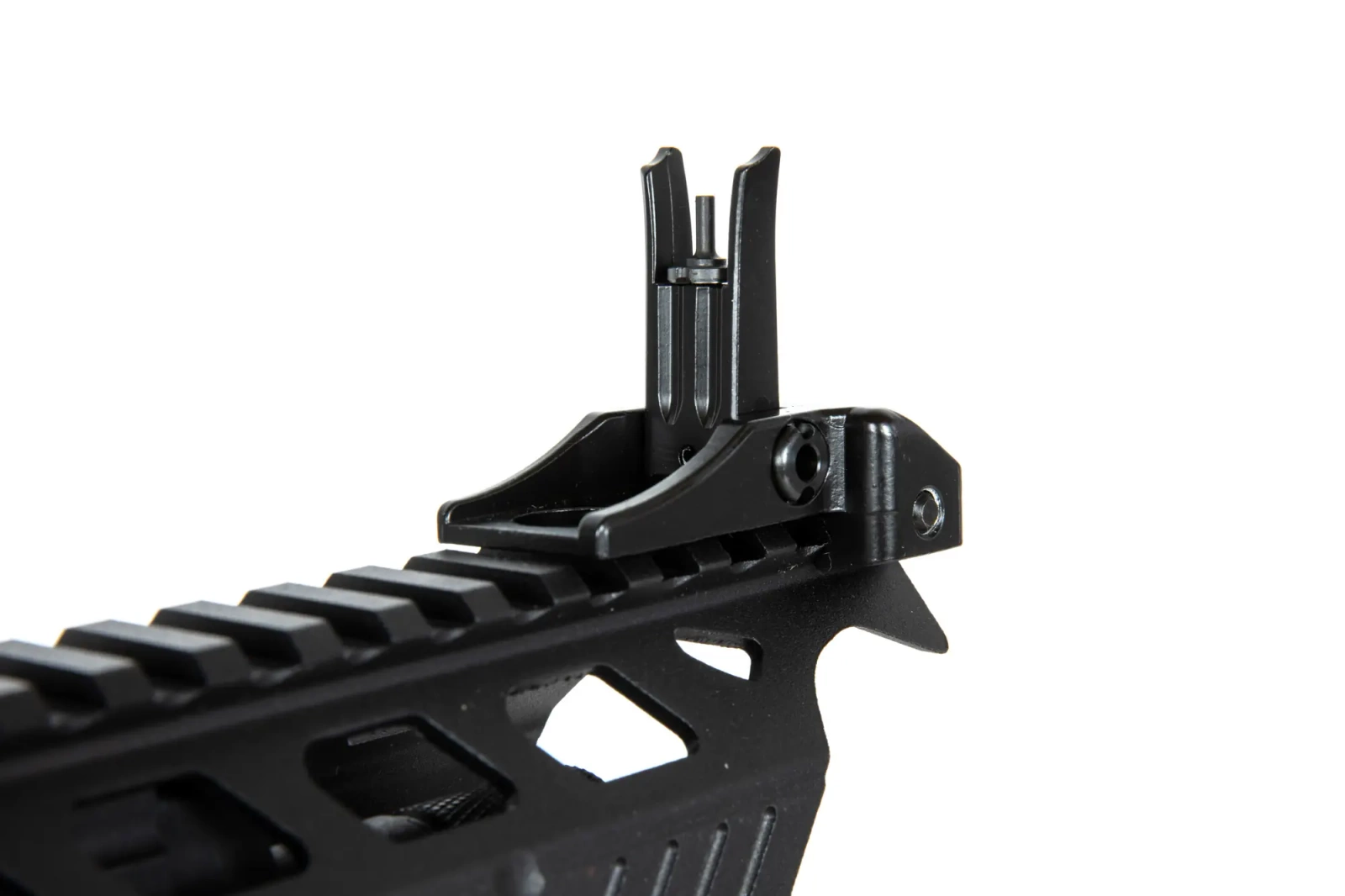 Zastosowana grzbietowa szyna RIS pozwala na przyłączenie dowolnego celowniczego urządzenia optycznego, zaś wielopozycyjna, mieszcząca akumulator kolba umożliwia przystosowanie repliki do indywidualnych preferencji użytkownika. W zestawie otrzymujemy komplet składanych, mechanicznych przyrządów celowniczych typu flip-up.