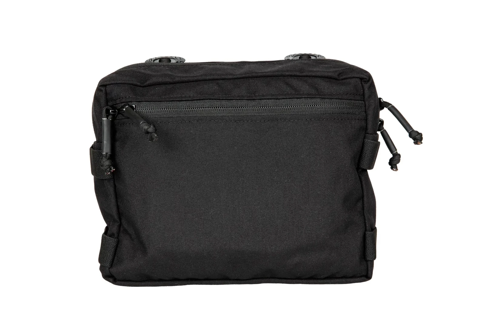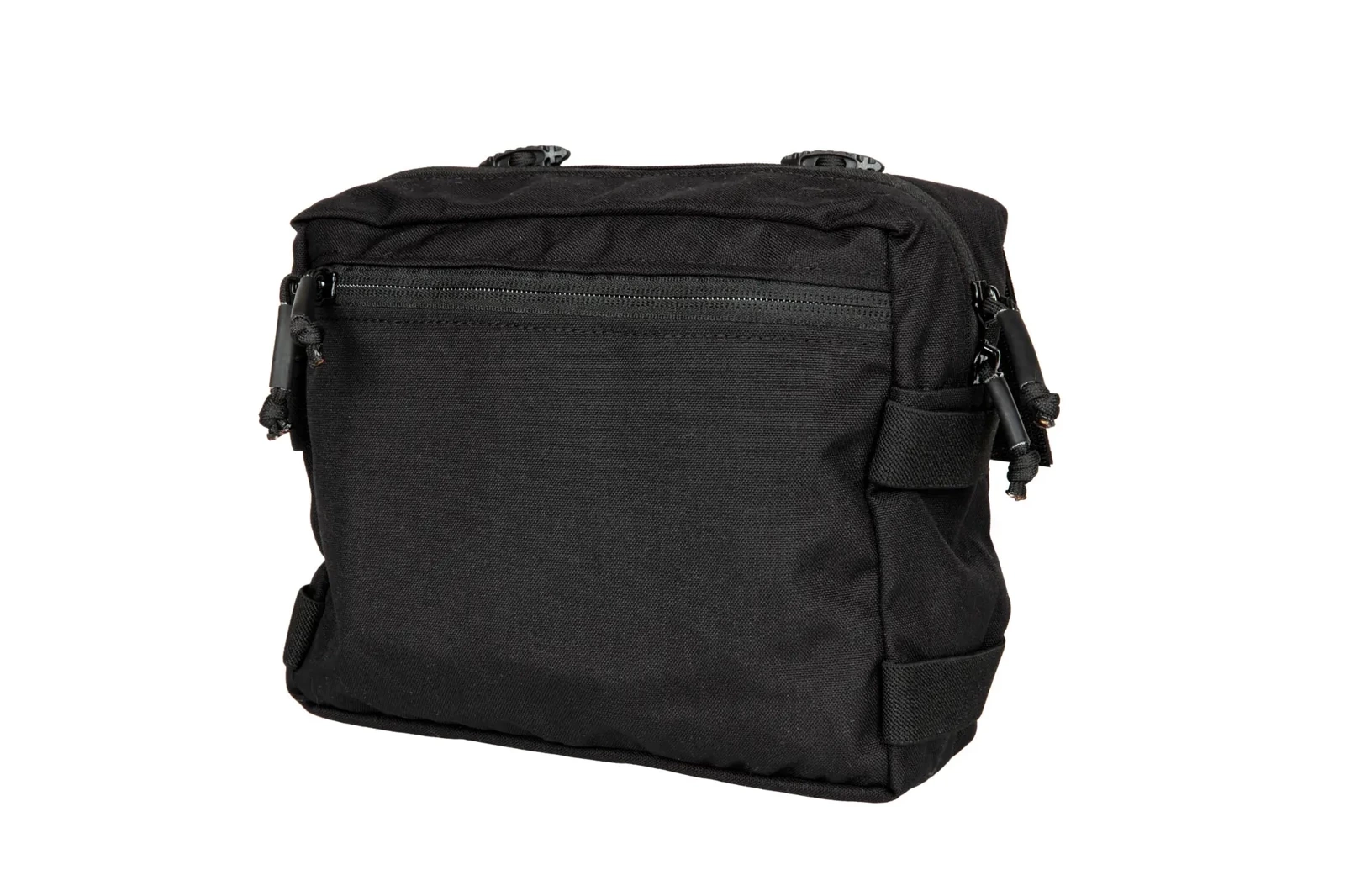 Torba posiada 2 duże kieszenie zapinane zamkami błyskawicznymi firmy YKK®, kieszeń przednia to zwykła komora do przechowywania drobniejszych przedmiotów, oraz duża kieszeń cargo z wszywkami rzepowymi na obu ściankach, pozwalającymi na montaż paneli z pętlami elastycznymi. Duża kieszeń posiada na dnie drenaż, odpowiedzialny za usuwanie wody w przypadku zanurzenia.