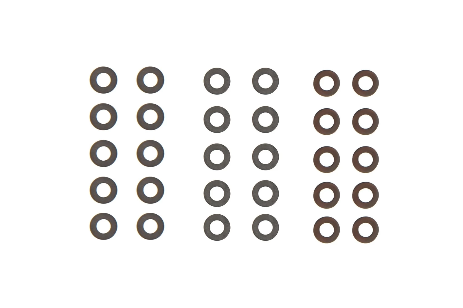 Zestaw stalowych podkładek do kół zębatych w gearboxie.