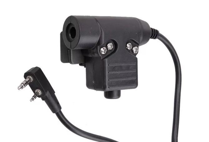 Przycisk PTT do zestawów słuchawkowych z wtykiem typu military plug. Przycisk mocowany jest do oporządzenia dzięki prostej klamrze. Jego małe wymiary nie utrudniają korzystania z kieszeni czy ładownic. PTT posiada wtyk zgodny ze standardem KENWOOD.