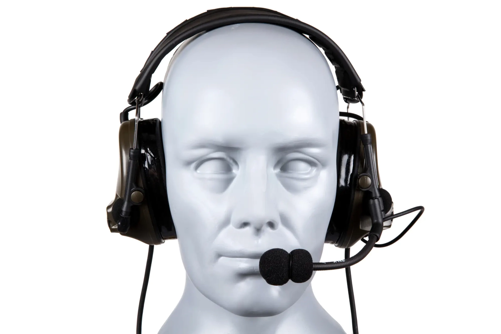 Replika zestawu słuchawkowego Comtac III. Zestaw posiada dwa mikrofony(po jednym przy każdej słuchawce), które wychwytują dźwięki z zewnątrz i wzmacniają je. Użytkownik może dostosować poziom głośności do własnych potrzeb. Poprzez regulację głośności radia i regulacji głośności słuchawek można równoważyć oba poziomy dźwięku, dzięki czemu bez przeszkód można usłyszeć zarówno komunikaty radiowe, jak i swoje ;Można nawet tak wyregulować zestaw, aby zwiększyć głośność dźwięków otoczenia w celu zwiększenia percepcji słuchowej lub wyciszyć je, jeśli dźwięki otoczenia zagłuszają komunikaty radiowe lub przeszkadzają w koncentracji.