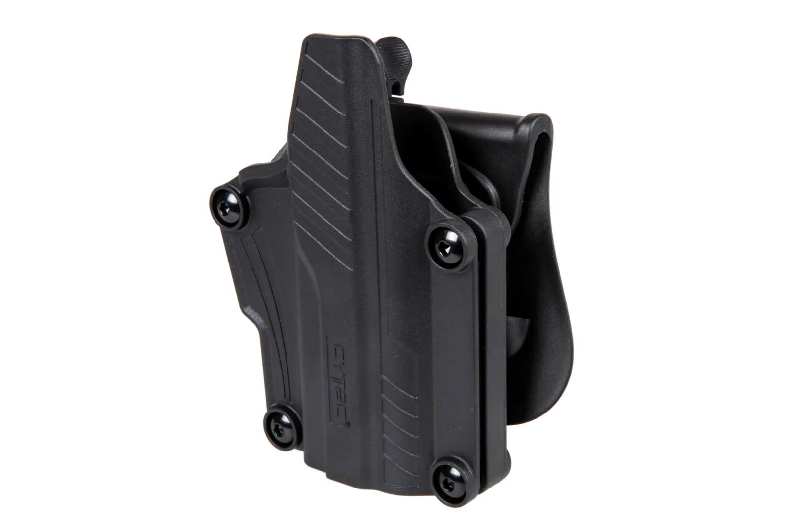 Kabura wyprodukowana przez firmę Cytac przeznaczona do różnych popularnych rodzajów pistoletów: Glock, Beretta, Sig Sauer, Taurus, etc. wersja "Plus Optics" została przystosowana do współpracy z pistoletami wyposażonymi w optykę jak i również mechaniczne podwyższone przyrządy ;