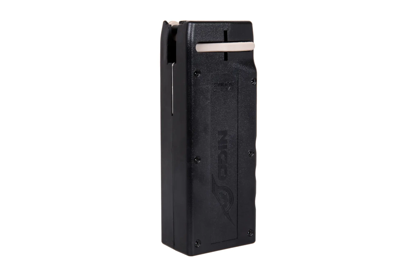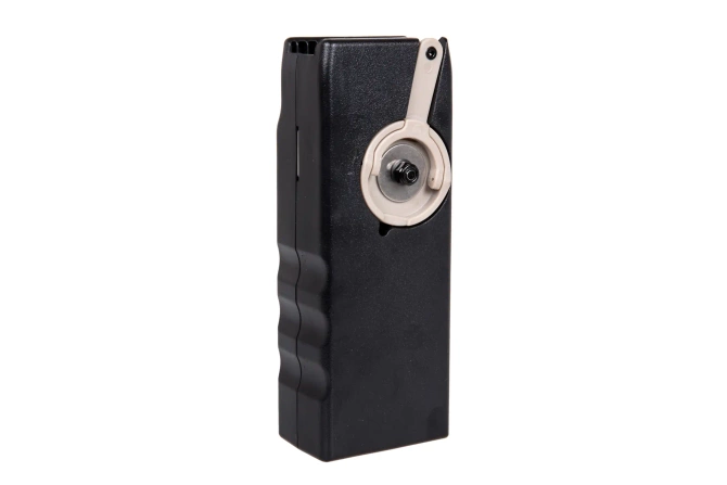 Szybkoładowarka M12 Sidewinder to niezbędny element wyposażenia każdego airsoftowca. Dzięki obrotowi korbą prawie każdy magazynek typu mid-cap M4 można bardzo szybko naładować do pełna. Kompaktowy rozmiar M12 Sidewinder idealnie mieści się w każdej podwójnej ładownicy na magazynki M4, dzięki czemu można go łatwo przenosić.