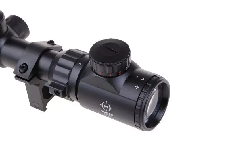 Luneta Theta Optics™ jest gwarancją wysokiej jakości za rozsądną cenę. Zamknięta w wytrzymałej, metalowej obudowie przejrzysta optyka z krzyżem celowniczym typu mil-dot oraz regulowanym powiększeniem. Dzięki podświetleniu krzyża (czerwone lub zielone) lunetę z powodzeniem możemy wykorzystać do prowadzenia działań zarówno dziennych, jak i nocnych. Zasilanie stanowi bateria CR2032 (w zestawie). Krzyż celowniczy można płynnie regulować w pionie i poziomie. Produkt montowany na standardowej szynie RIS 22mm.