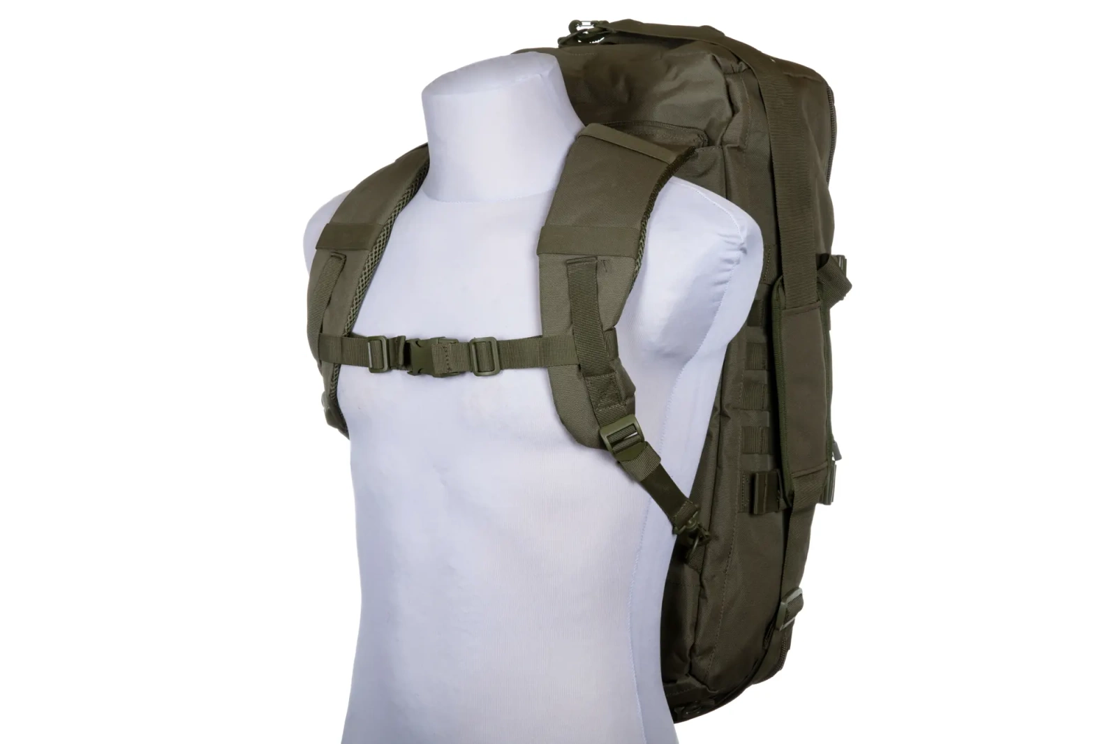 Obszerny plecak wykonany z wytrzymałego Nylonu 500D. Model cechuje wysoka funkcjonalność dzięki wielu kieszeniom wewnętrznym oraz zewnętrznym i możliwości przekształcenia plecaka w torbę podręczną lub torbę na ramię.