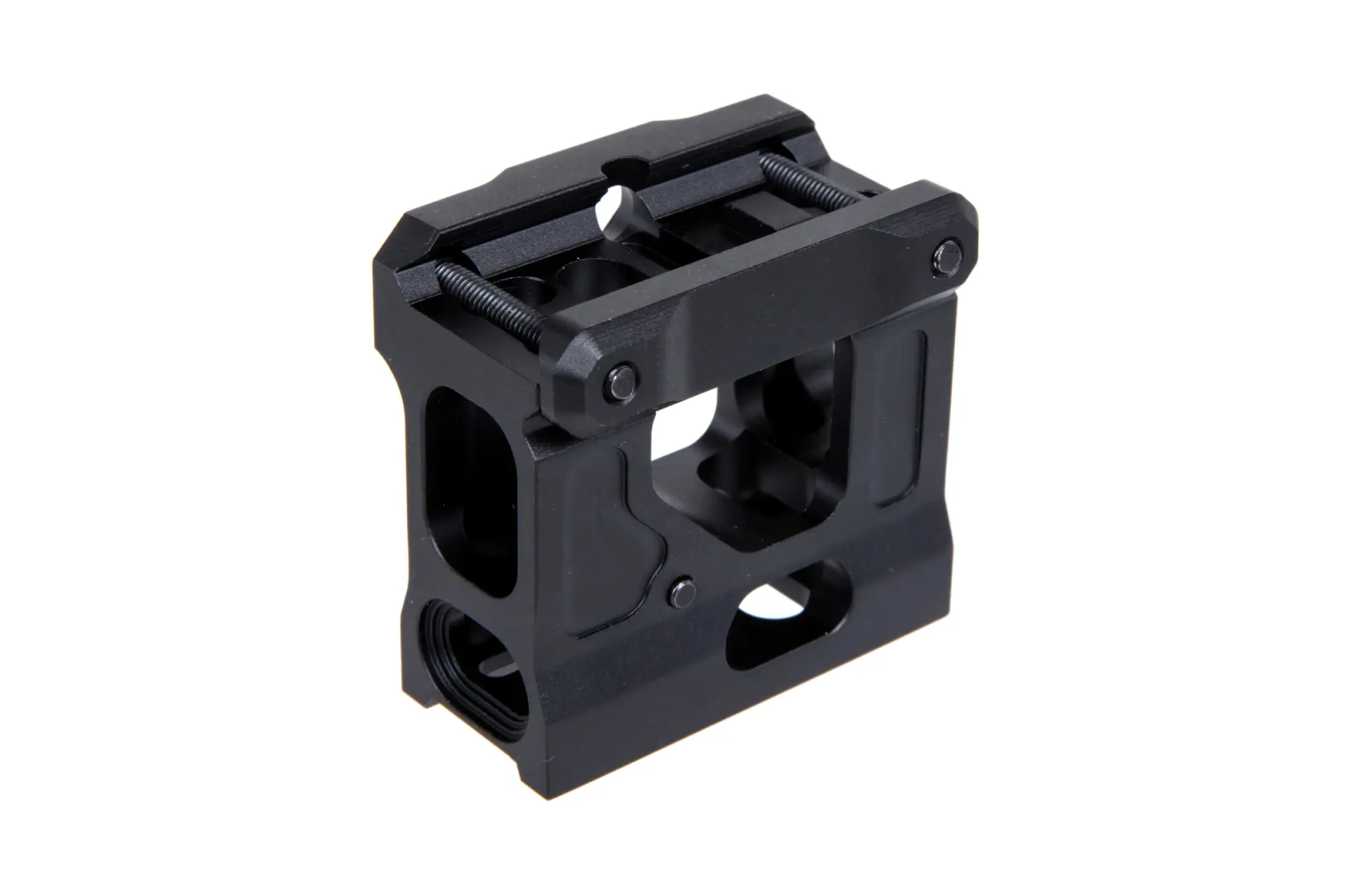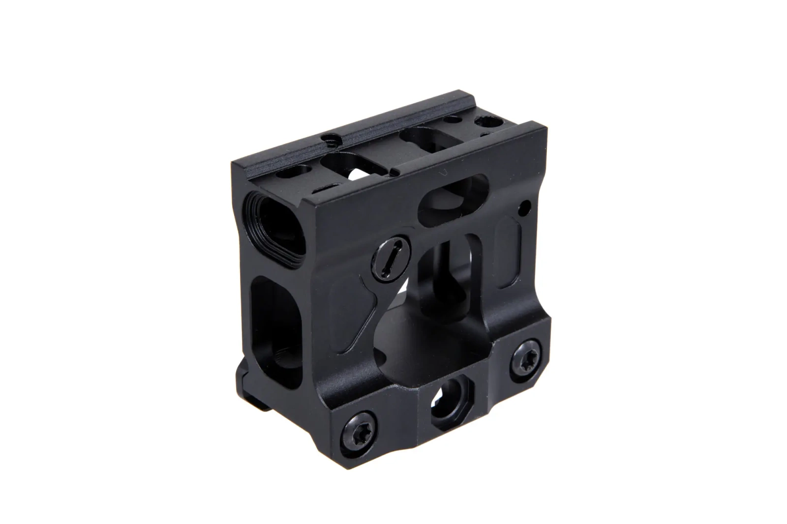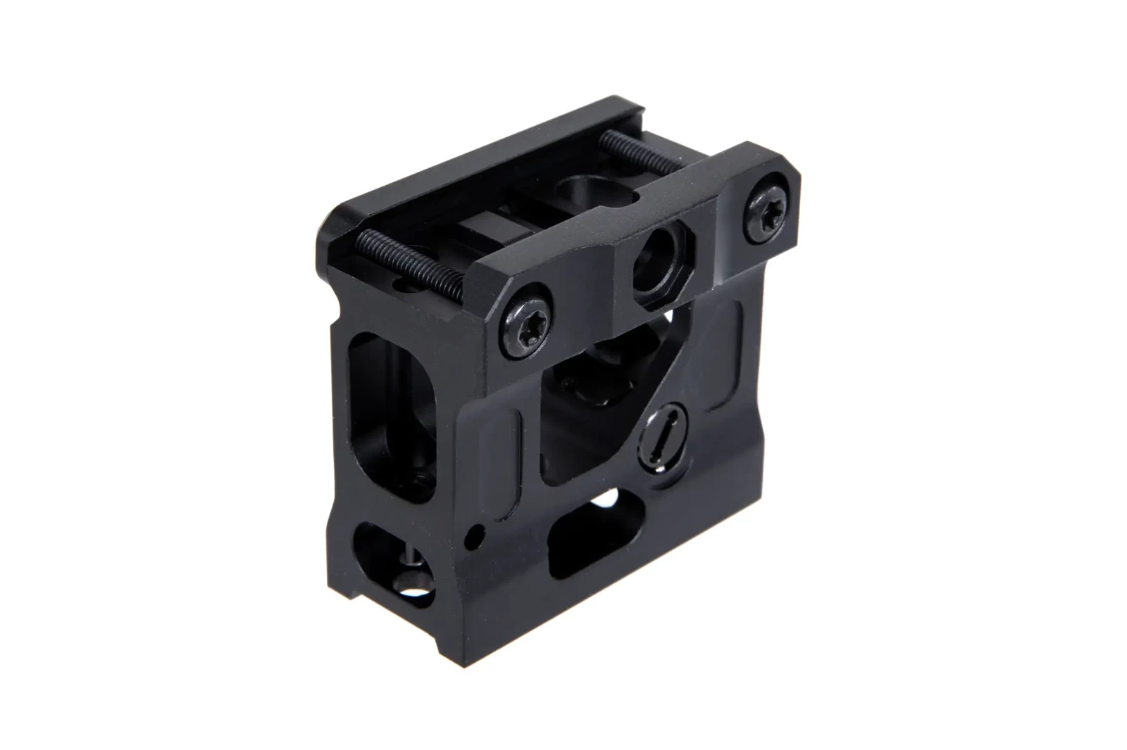 Wykonany z aluminium montaż do celowników kolimatorowych formatu T1 wyposażony w prosty, lecz regulowany celownik przeziernikowy.