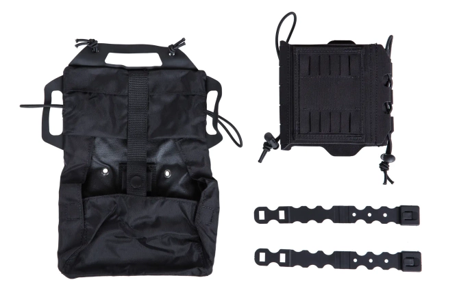 Rękaw transportowy posiada z przodu rzep na naszywkę, tył z kolei ma wykonany metodą Laser-Cut panel molle, całość może być regulowana przy pomocy linki Shockcord