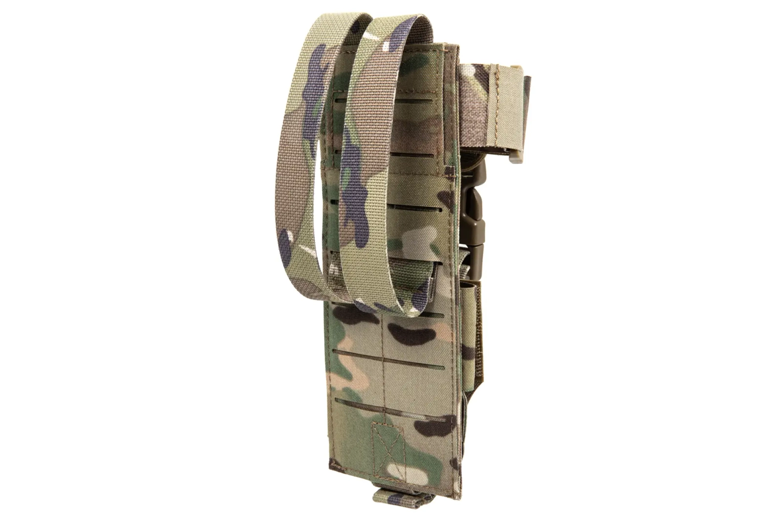 Uszyta z wytrzymałego materiału, lekka ładownica zaprojektowana do transportu radia. Tylna ściana została wyposażona w wykonany metodą Laser-Cut panel molle, który umożliwia zamocowanie ładownicy na pasie lub oporządzeniu taktycznym. Wbudowana klamra i regulowane elastyczne taśmy zabezpieczają radio przed upadkiem.