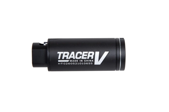Wykonany z wytrzymałego aluminium i tworzywa sztucznego wysokiej jakości Tracer w formie tłumika dźwięku. Tłumik może naświetlić maksymalnie 35 kulek/sekundę. Model naświetla kulki  zielone ASG oraz Gelblaster, pełne naładowanie starcza na 4 godziny pracy, włącznik znajduje się na zewnątrz obudowy. Tracer został również wyposażony w diodę symulującą błysk wystrzału w 7 kolorach oraz w trybie wielokolorowym.