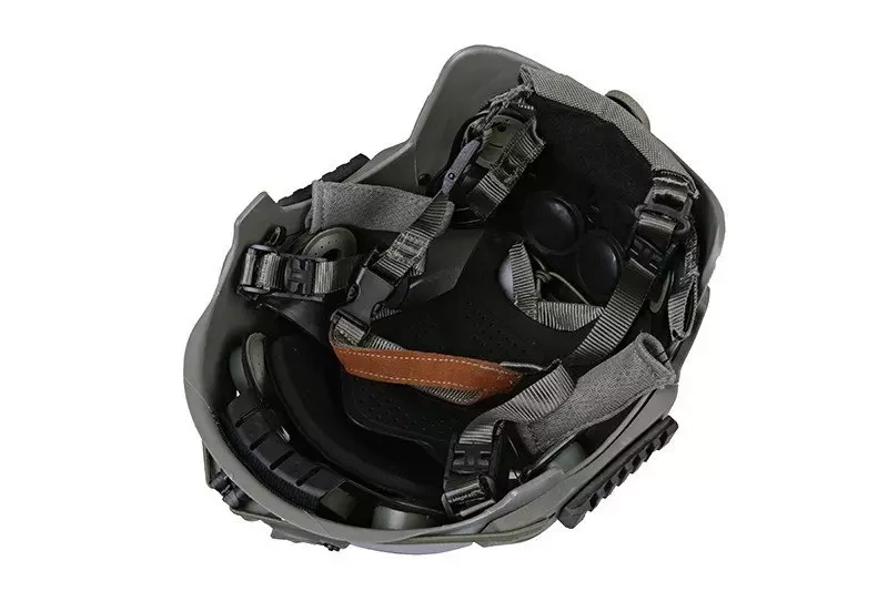 Co istotne, kask zaopatrzony został również w zespół uniwersalnych szyn montażowych (w tym RIS 22mm), pozwalających na instalację dodatkowego wyposażenia Moduły montażowe zaopatrzone są w elastyczne linki służące jako odciągi do montażu systemu NVG.