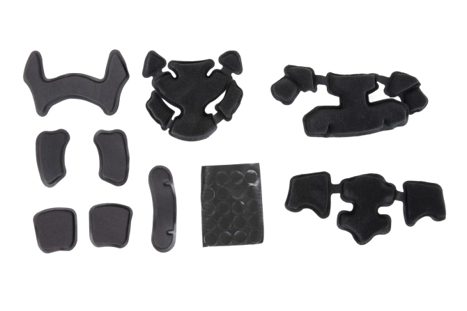 Zestaw miękkich poduszek do montażu wewnątrz różnego typu hełmów/kasków.