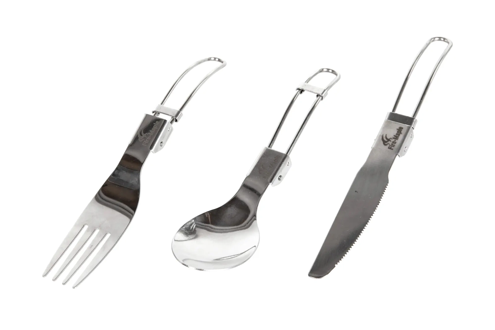 Zestaw wykonany ze stali nierdzewnej. Wszystkie trzy elementy są składane, co ułatwia transport i przechowywanie.