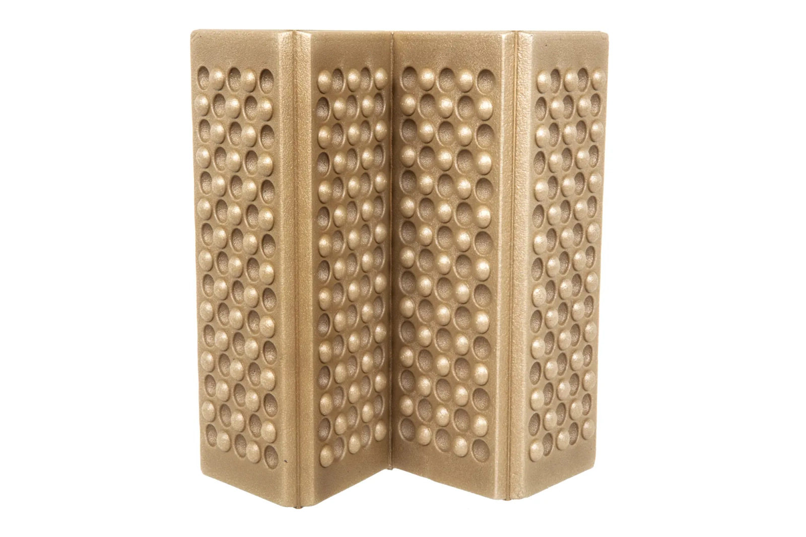 Składana mata do siedzenia wykonana z pianki XPE. Pianka ma porowatą strukturę z wgłębieniami i wypustkami, co zwiększa komfort siedzenia na nierównym podłożu. Wykorzystany materiał jest wodoodporny i posiada bardzo dobre właściwości izolacyjne i sprężyste, ponadto jest nietoksyczny i przyjazny dla środowiska.