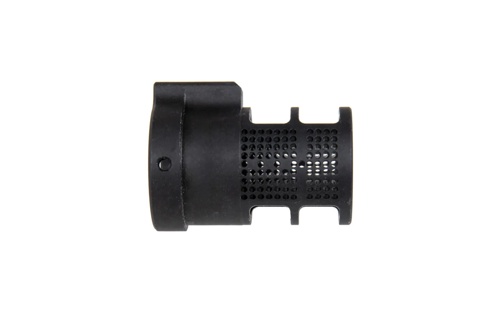 Wysokiej jakości replika urządzenia wylotowego wykonana z aluminium. Pierwowzór pełni funkcję rozpraszacza i tłumika gazów wylotowych, nakładanego na fabryczne urządzenie wylotowe. CAGE sprawia, że gazy wylotowe są skierowane do przodu i horyzontalnie tak aby nie razić nimi stojących obok kolegów.