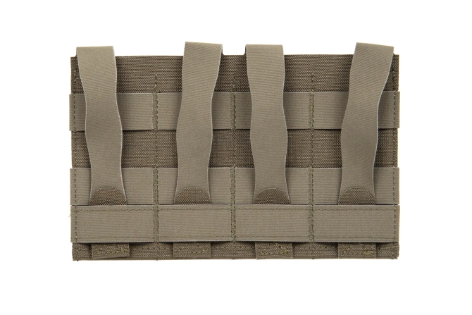 Szybka ładownica typu Speed na 4 magazynki do pistoletu maszynowego. Ładownica została częściowo wykonana z elastycznego materiału - ta ciekawa konstrukcja umożliwia błyskawiczne dobycie magazynka, zapewnia jego stabilne mocowanie, całość jest ponadto dużo lżejsza od ładownic klasycznego typu i zajmuje mniej cennego miejsca na oporządzeniu.