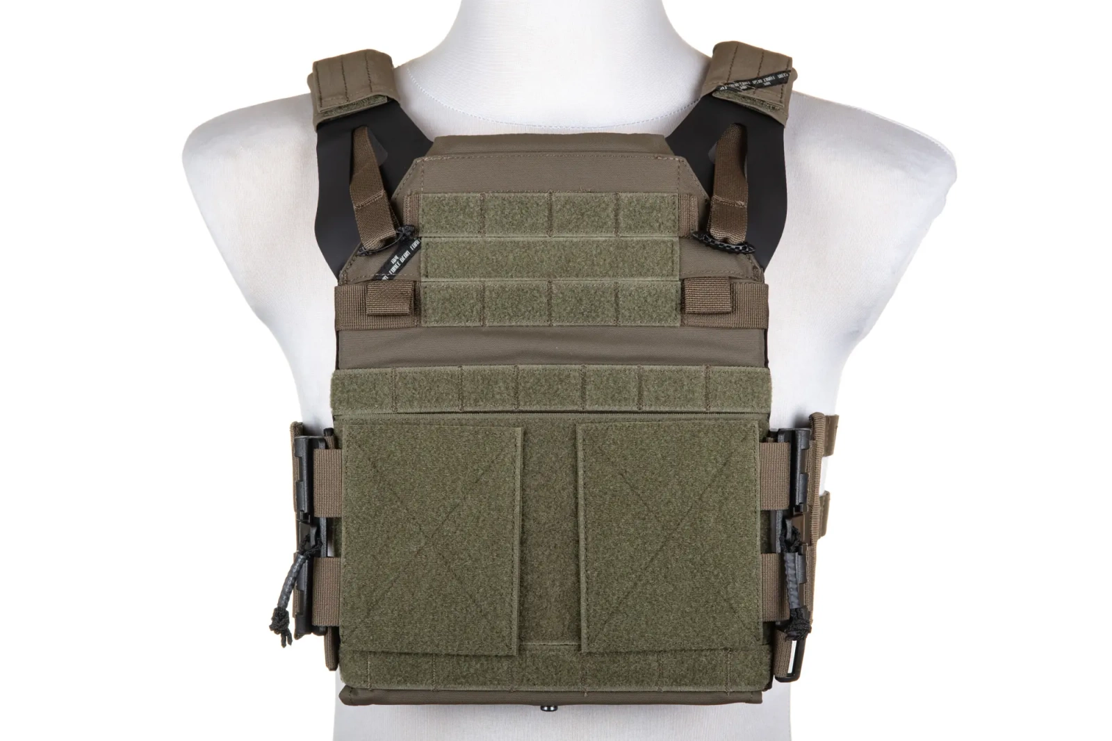 Kamizelka posiada 2 kieszenie na wkłady balistyczne rozmiaru medium. Dwie atrapy takich wkładów (z grubej pianki) zostały dołączone do zestawu. Na klatce piersiowej umieszczono ponadto płaską kieszeń, na której naszyto taśmy pokryte rzepami - przydatne do mocowania naszywek, oznaczeń, ;