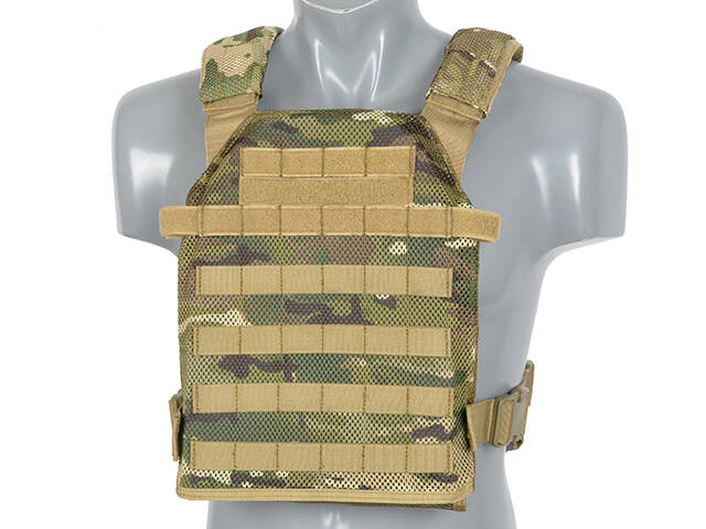 Lekka i minimalistyczna kamizelka została zaprojektowana z myślą o zapewnieniu maksymalnej mobilności, oszczędności masy oraz łatwości w spakowaniu. Jej ogólna konstrukcja opiera się na siatkowym materiale, co zapewnia natychmiastowe odprowadzanie wody i potu. Kamizelka waży nieco ponad 800g na cały nośnik płyt, co sprawia, że jest wyjątkowo lekka, a jednocześnie oferuje szeroki zakres konfiguracji, aby zaspokoić różnorodne potrzeby operatora pod względem ochrony, modułowości i komfortu.